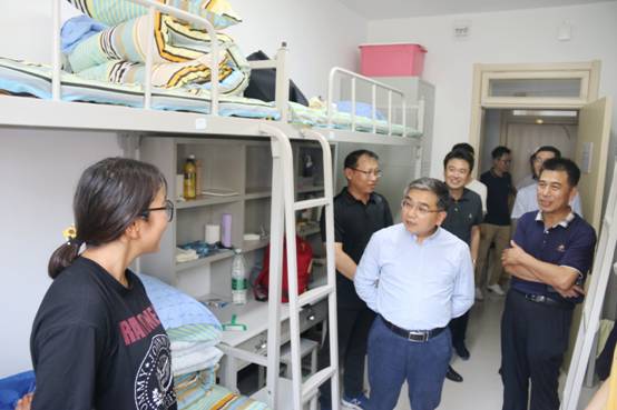 为进一步掌握新生入住宿舍的具体情况,亲近学生、关心学生,让新生感受到学校领导、老师们对他们的关心与关怀,校党委书记胡金焱于2019年9月7日下午15:00时,在h动漫
