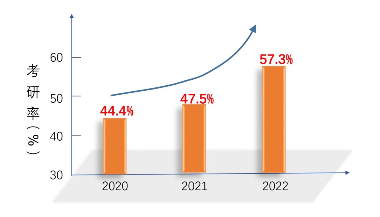 考研率刷新了历史记录。2022届共计220名毕业生,其中126名同学被985、211、双一流等高校录取为硕士研究生,考研率为57.3%,与2020年及2021年相比,录取比例稳步提升。其中化工专业共录取44人,考研率为60.3%,应化专业共录取61人,考研率为57.0%,化学教育专业共录取21人,考研率为52.5%。