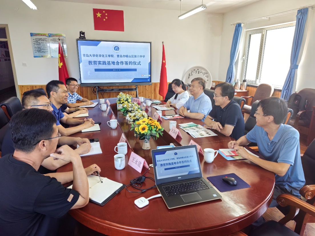 与青岛市崂山区第六中学举行了教育实践基地签约授牌仪式。学院党委书记姜永杰、院长王国明、党政办主任李志国、化学教育系主任韩松德、学科教学负责人万延岚,与青岛市崂山区第六中学校长尹相京、党支部书记段晓娣、副校长徐晓、李道文、王永建等共同出席仪式。