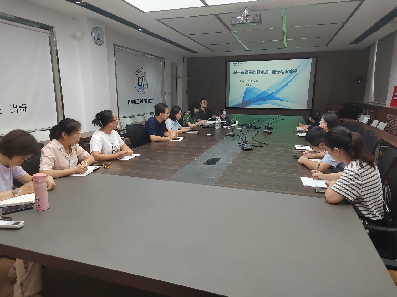 会上,曹老师首先做了题为《基于雨课堂的混合式一流课程的建设》的专题报告,围绕一流本科课程的内涵和评审机制、评审书中每一项内容的撰写方式以及评审过程中出现的问题等方面,结合自身的申报经历和体会,详细地为老师们讲解了一流本科课程的申报事项和撰写策略。夏老师做了《基于雨课堂做混合式教学、课堂改革过程性考核的实操分享》报告,从技术操作层面,详细介绍了利用雨课堂开展混合式教学改革的方式方法,以及如何构建“以学生为中心”的翻转课堂,并分享了如何利用雨课堂功能完成签到点名、作业制作、弹幕投稿、课堂板书等实操。
