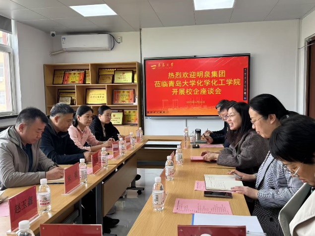 座谈会上,毕赛院长详细介绍了学院的发展历程、师资队伍、平台建设等情况。学院拥有国家级一流本科专业及省级工程认证优势,招生规模持续扩大。学院始终致力于培养学生扎实的专业基础和较强的科研能力,力求以企业需求为导向,培养精准化人才。吴国亮主任回顾了企业发展轨迹,介绍了企业转型后的产业布局及人才需求,指出集团在基础化工、高端新材料(如PSPL芯片材料、PPS聚醚酮)、医药中间体等领域的创新突破,亟需高素质专业人才支撑。集团对学院毕业生质量高度认可,希望通过校友员工为桥梁,建立长期稳定的招聘通道,并计划在毕业季开展专场招聘。同时,集团期望通过校企共建课程、实习基地等方式,与学院进行深化合作。