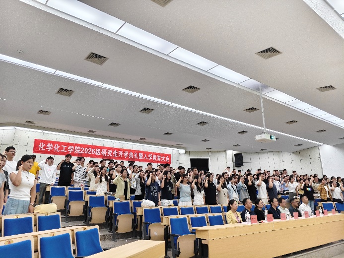 院长毕赛,党委副书记李咏沙,副院长胡继祥,院长助理、学科教学负责人万延岚,院长助理王宁,化学工程与工艺系主任、化学工程与技术、化学工程学科负责人杜辉,学院团委书记史氾平以及170余名2025级研究生参加大会。大会由2025级研究生辅导员周俊浩主持。
