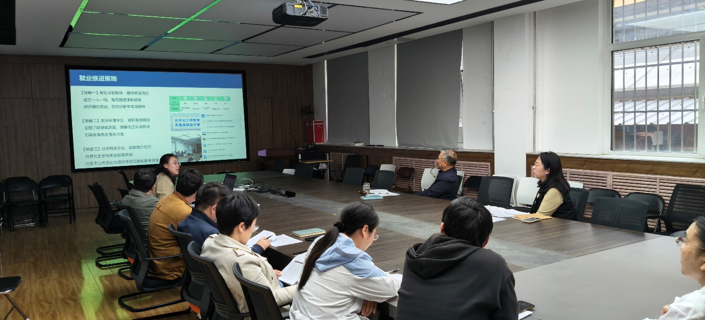 会上,两位毕业生辅导员分别就2026届毕业生就业进展情况进行了详细汇报。本科生辅导员孟丽汇报了学院考研录取和调剂的具体情况,各专业就业进度;研究生辅导员史氾平分学科汇报了研究生毕业生就业工作的阶段性进展、目前存在的主要问题及下一步工作计划等方面,通过详实的数据分析,全面展示了当前就业工作的推进情况。