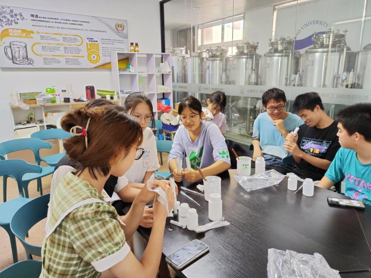 除学科前沿类讲座,通识教育、创新创业类报告同样精彩。7月1日,王越老师做了题为“啤酒风味物质的调控及分析”的学术讲座,详细介绍了如何通过原料比例调控生产多种特色风味啤酒,并提出如何以液/气相色谱等实验手段表征风味物质参数,给风味啤酒建立数字化的数据库。7月7日,青岛狮王日化公司研发部李德豹部长应邀做了题为“口腔知识及牙膏样品现场制作”的知识讲座。李部长首先详细指出了关于牙齿与口腔的常见问题,随后介绍了牙膏的发展过程以及在牙齿保护中的重要作用,最后带领同学们现场有趣地DIY制作牙膏。