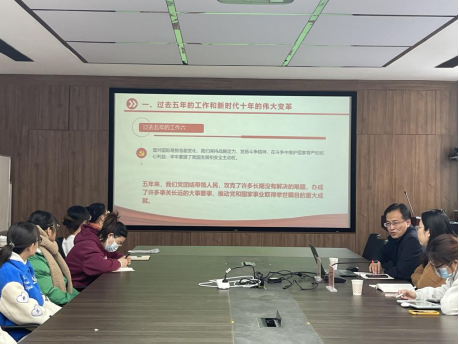 在博观楼206会议室举行党的二十大精神专题宣讲会,院长王国明、院党委副书记李咏沙、院学生第一党支部书记孟丽、研究生党员及学生代表参加会议,会议由李咏沙同志主持。