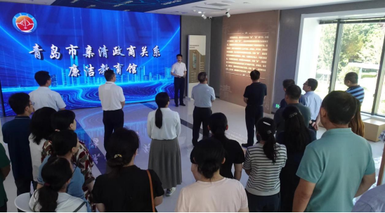 青岛市亲清政商关系廉洁教育馆是贯彻落实党中央加强新时代廉洁文化建设要求,着力优化营商环境而打造的主题廉洁教育展馆,展馆综合运用新技术,多角度、立体化溯源梳理了政商关系发展脉络。在工作人员的讲解带领下,全体人员依次参观了序厅、源之路、亲之路、清之路、兴之路五大展厅。一幅幅图画、一段段文字、一个个视频,全体党员干部沉浸式体悟了中华优秀传统文化中的商业文化和廉洁文化,认真学习领会了习近平总书记关于亲清政商关系的重要论述,深入了解党的十八大以来党对构建亲清政商关系的实践探索,既感受了青岛市打造一流营商环境的举措和成果,也从违纪违法典型案例中汲取教训,接受了一次警示教育和精神洗礼。
