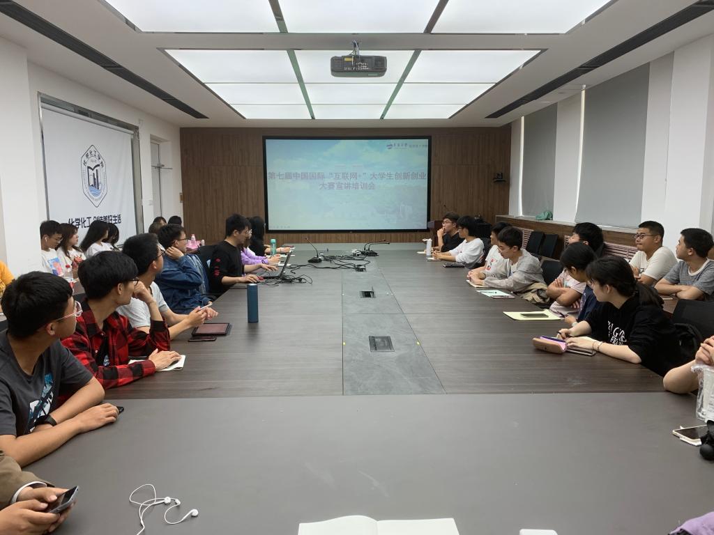 19级化工专业王炳仪和林建兵分别介绍了自己的参赛项目,并向学弟学妹们分享了自己的参赛经验,鼓励大家积极加入他们的团队,一起冲击第七届中国国际“互联网+”大赛。