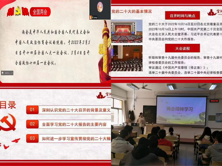 本科各团支部通过线上会议和线下班会结合的方式组织召开专题学习。深入学习宣传贯彻党的二十大精神、学习习近平总书记关于青年工作的重要论述,学习贯彻全国两会精神,深刻理解“两个确立”的决定性意义,坚决做到“两个维护”,引领大家听党话、跟党走,不懈奋斗,贡献出自己的一份力量。同学们深刻感悟过去五年党和国家事业发展的伟大成就,将深入贯彻落实习近平总书记关于青年工作的重要思想。
