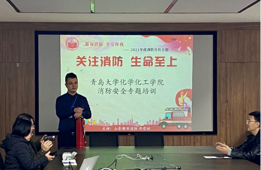 2021年12月14日下午,化学化工学院在博观楼409和博观楼前举行了危化品、危险废物泄露和消防应急演练,并在博观楼206会议室进行消防安全知识讲座。学校资产与实验室管理处、安全管理处相关领导及化学化工学院部分师生参加了此次活动。